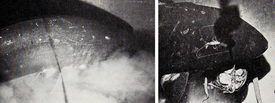 Isaacs' "giant sleeper shark" photographs, from Baja California (left) and Hawaii (right), published in The Face of the Deep (1971) by Bruce Heezen.
