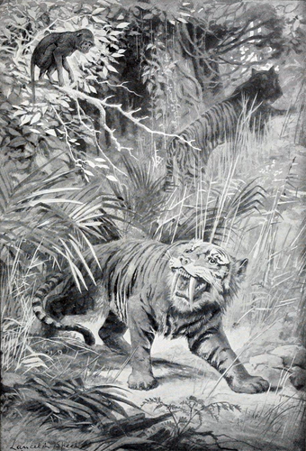 A classic restoration of Machairodus, a particularly succesful sabre-toothed cat, by Lancelot Speed (1905).