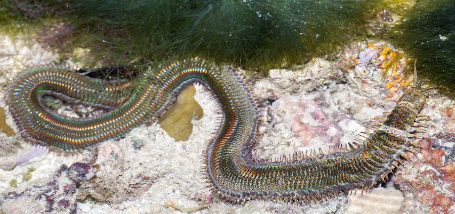 The Bobbit worm (Eunice aphroditois) is one of the largest known species of bristle worm. It may grow up to 10' in length.