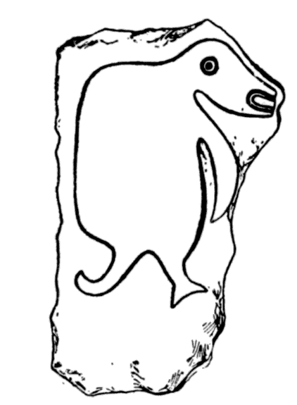 An unknown animal depicted in rock art from Orongo, identified by Brown as a possible niuhi.